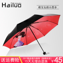 三折叠晴雨伞两用女韩国小清新创意太阳伞遮阳伞小黑胶伞学生简约