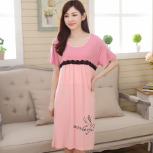 短袖纯棉睡裙 大码胖MM夏季睡衣可爱莫代尔女款家居服可外穿孕妇