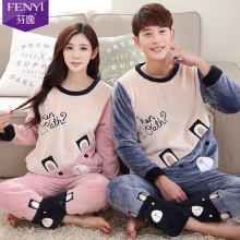 芬逸秋冬加厚珊瑚绒情侣睡衣女卡通长袖冬季法兰绒男士套装家居服