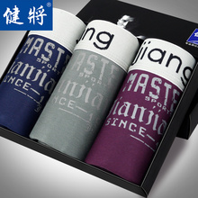 健将男士内裤平角弹力棉U凸透气中腰内裤男四角裤3条礼盒装包邮