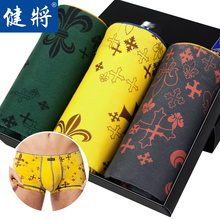 健将男士内裤男平角裤冰丝锦纶四角青年中腰性感印花裤头礼盒装