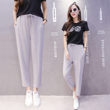 安腾画沙2017夏季新款韩版时尚简约纯色宽松显瘦哈伦九分休闲裤女