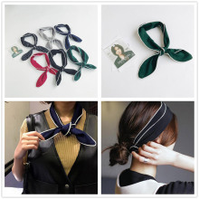 韩国时尚纯色丝巾女春夏秋雪纺包边领巾百搭小围巾领结头巾头飘带