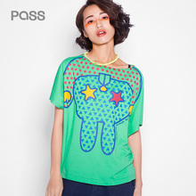 PASS潮牌女装短袖透气体恤女宽松蝙蝠衫卡通兔子大码胖MMT恤