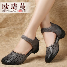 欧琦蔓2017夏季新款真皮包头凉鞋女镂空花朵搭扣舒适低跟女鞋9531