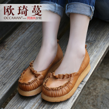 欧琦蔓2017春新款软底鞋女手工真皮平底圆头休闲鞋牛皮单鞋42011