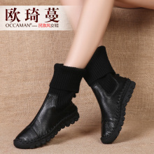 欧琦蔓2016秋冬新款原创复古休闲真皮短靴女平底加绒软底鞋16021