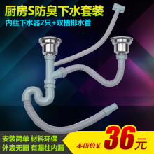 不锈钢厨房水槽双槽防臭过滤提篮/提笼下水器套装 洗菜盆配件包邮
