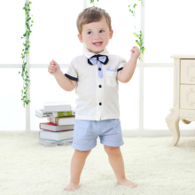 婴幼儿衣服夏天男宝宝学院风格短袖格子领带绅士哈衣宝宝连体衣夏