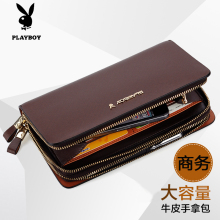 PLAYBOY/花花公子钱包男士长款拉链青年真皮钱包头层牛皮皮夹潮
