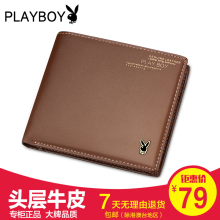 PLAYBOY/花花公子钱包男士横款短款钱包日韩真皮休闲薄皮夹牛皮潮