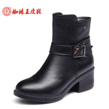 蜘蛛王女鞋真皮短靴女冬季加绒保暖坡跟马丁靴英伦风短筒马丁女靴