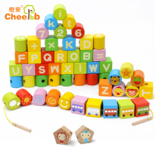 橙爱 方方圆圆儿童字母数字认知串珠玩具 54粒宝宝手工穿线积木