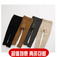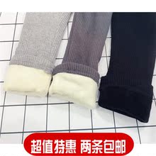 yy妞 男女童加绒加厚打底裤儿童中小童纯棉螺纹长裤2016冬季新款