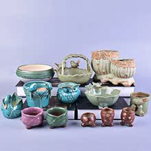 满6个包邮多肉花盆陶瓷简约粗陶紫砂绿植小多肉植物花盆清仓包邮