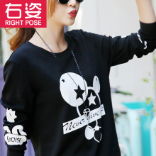 春装2017新款女装韩版潮宽松长袖t恤女学生卫衣春季打底衫上衣服