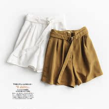 穿出比例好身材!2017夏 装饰腰带 垂顺显瘦高腰阔腿短裤 女 8552