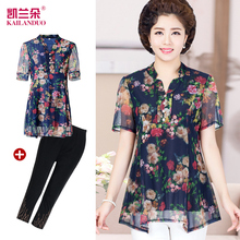妈妈装夏装短袖T恤女40-50岁薄上衣30中年女士雪纺衫时尚套装裤子
