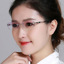 超轻近视眼镜女纯钛镶钻切边无框眼镜框架配成品度数防辐射85005