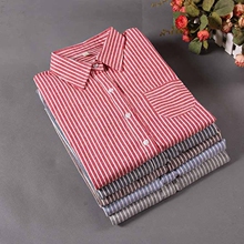 秋冬季新款女装条纹纯棉衬衫长袖女韩版显瘦打底衫宽松大码衬衣