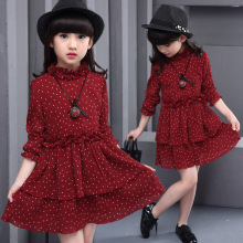女童长袖连衣裙2017春装新款童装春夏儿童修身中长款女童雪纺裙子