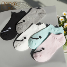 5双装 袜子女短袜 可爱微笑笑脸猫咪简约甜美春夏款浅口隐形船袜