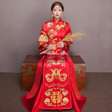 2017春季新款中式秀禾服长袖大码旗袍新娘结婚敬酒礼服龙凤褂嫁衣
