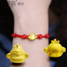 黄金猴生肖羊3D硬金十二生肖皇冠猴子本命年转运珠红绳手链男女款