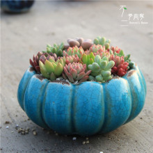 多肉花盆绿植小盆栽陶瓷做旧冰裂纹果冻色田园桌面创意花器南瓜盆