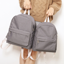 时尚新品帆布纯色书包中学生双肩包女韩版学院风百搭双肩背包