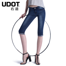 右道夏装薄款中腰弹力牛仔七分裤女 卷边2016夏季新品U025