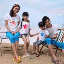 亲子装夏装短袖T恤2017新款一家三口棉质加肥加大码四口母女春装