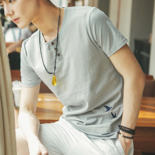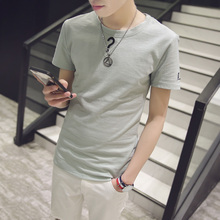 夏季男士T恤短袖圆领男生棉麻体恤修身半袖男装韩版潮流夏装衣服
