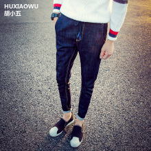 胡小五秋季新品牛仔裤男小脚修身款韩版青年日系弹力休闲小脚裤男
