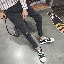 2017春秋新款男士牛仔裤破洞小脚裤韩版修身青年日系复古男长裤潮