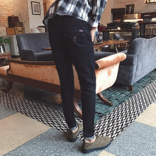 2017男装港仔文艺男士牛仔裤春秋韩版修身休闲小脚裤潮黑色长裤