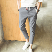 夏季新款 日系潮韩版修身亚麻小脚裤男 棉麻青年休闲9分九分裤男