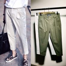 鸟店东大门韩版夏季锥形哈伦九分裤男士萝卜休闲小脚裤卷边9分裤