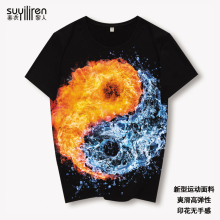 中国风水墨印花短袖T恤太极八卦阴阳鱼周易夏装半截袖男大码