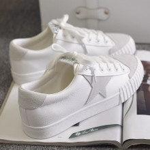 环球春夏低帮厚底白色帆布鞋女韩版休闲系带松糕鞋小白鞋学生板鞋