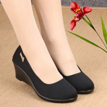 新款老北京布鞋女鞋工作鞋黑色坡跟平底上班鞋女圆头职业高跟鞋子