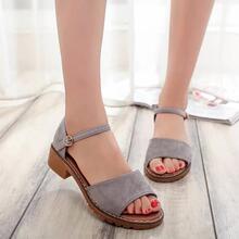 夏季大码牛筋中跟学院磨砂鱼嘴低跟凉鞋粗跟平底坡跟扣带女鞋子