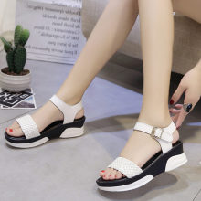 2017新品厚底防滑女凉鞋韩版百搭罗马松糕跟学生女鞋魔术贴大码鞋
