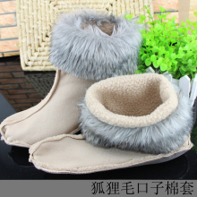 中筒棉套 筒高19cm 仿豹纹 狐狸毛 貂毛翻边固定 鞋内胆加绒
