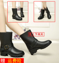 秋春季中筒女式雨鞋百搭厚底防滑黑色成人雨靴女士水靴欧美可加绒