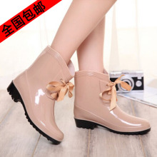 包邮春秋正品雨鞋短筒女波点中筒雨靴韩国时尚防滑水鞋平跟底套鞋