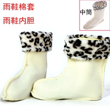 雨靴胶鞋加绒棉套冬季羊羔绒雨鞋棉内胆搭配中筒水鞋保暖豹纹袜套