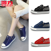 回力女鞋帆布鞋学生松糕女休闲板鞋韩版内增高平跟低帮厚底布鞋子