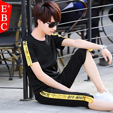 男士休闲套装夏季韩版青少年运动短袖T恤两件套潮流学生上衣一套