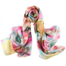 甄之桑100%真丝丝巾长款女春秋百搭女士围巾薄款印花加宽超大披肩